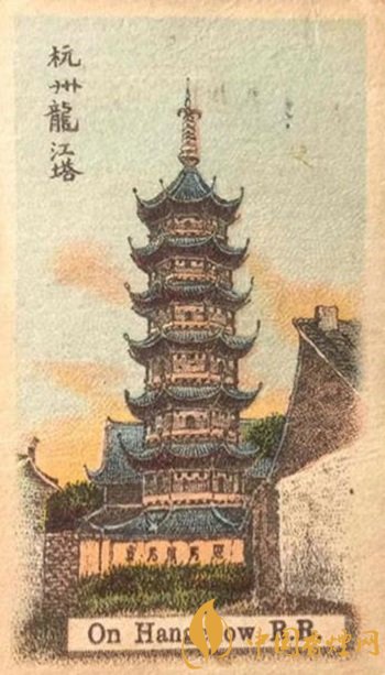 浙江杭州龍江塔何時(shí)始建暫時(shí)無考,從畫面上可以看出是一座七級(jí)八面的精美古塔??上ВF(xiàn)在這座古塔已蕩然無存,我們也只能從這張小小的煙畫上來領(lǐng)略這座古塔的風(fēng)韻。