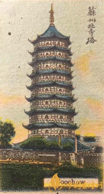 塔,是中國(guó)古代杰出的高層建筑,矗立在我國(guó)大江南北,體現(xiàn)了中國(guó)古代勞動(dòng)人民的智慧。上世紀(jì)初,日本村井兄弟商會(huì)社曾出品過一套50枚的“中國(guó)古塔”卷煙畫片,通過石印印刷技術(shù),將一百多年前的古塔風(fēng)貌濃縮于小小煙畫上,風(fēng)格迥異,頗具特色。今天,我們選取其中幾枚加以展示,一起領(lǐng)略中國(guó)古塔的魅力。