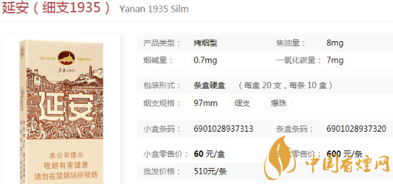 延安(細(xì)支1935)是一款可以彈琴的煙盒,這款香煙含有蜂王漿爆珠,口感香甜醇厚,細(xì)支煙比普通的貴10元,2018年有一款密碼箱包裝的香煙特別高端!