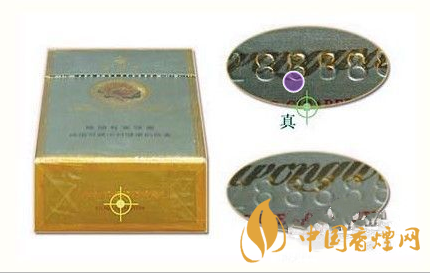 (2)看防偽標(biāo)記:條盒的正面芙蓉花防偽標(biāo)記,真煙的印刷在同一側(cè)面看到的只有一個(gè)圖樣;假煙的印刷在同一側(cè)面看到是幾個(gè)在一起的圖樣。