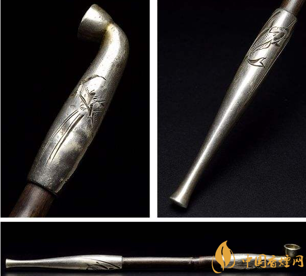 日本煙管的出于使用的耐久性考慮,煙嘴和煙鍋的部分多選用結(jié)實耐高溫的金屬——金、銀、銅、鐵、錫以及一些合金。在江戶時代,日本在金屬雕刻和電鍍的工藝上頗有建樹,因此煙管金具的裝飾和雕刻大都非常精美。